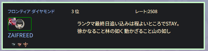 さて、今回のランクマッチも最終日を迎え結果が出ました。